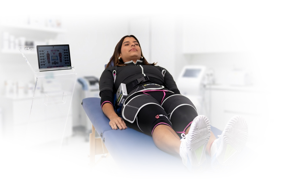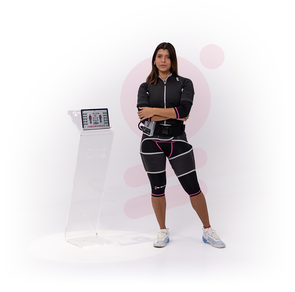 En Sistema GSlim utiliza impulsos eléctricos suministrados a través de electrodos de grado médico en una Traje Slim o GSuit, activando y tonificando con precisión los músculos seleccionados.